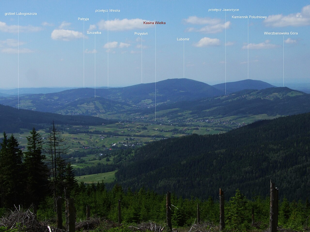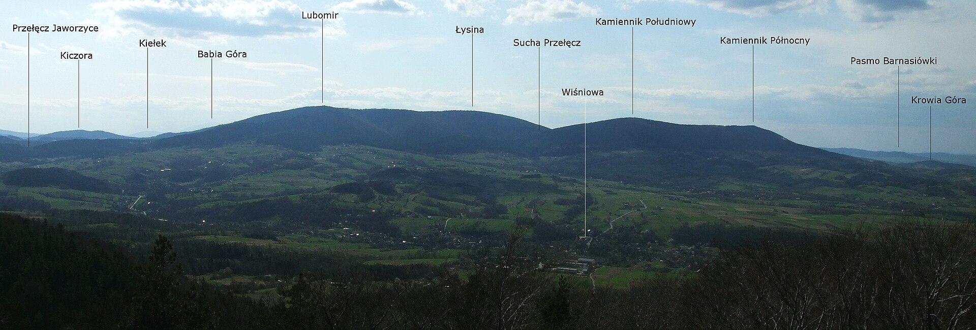Gościniec pod Lubomirem ; szlak czerwony – Lubomir – zwiedzanie obserwatorium – Schronisko PTTK na Kudłaczach – bez szlaku ścieżką do Poręby – bez szlaku śladami żołnierzy AK do polany Sucha – szlak żółty Łysina – szlak czerwony Gościniec pod Lubomirem. 4 godz. 45 min. 14 km.
